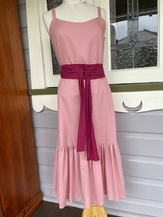 A simple cotton/linen blend dress which features a scoop hemline and can be worn plain or cinched in with a belt or sash. Add your favourite cardigan or the Blossom Top over the top for added colour and style, or underlay it with the Daffodil Dress for a longer look.