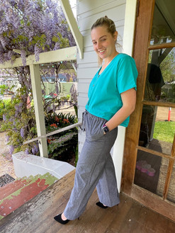 These pants have featured in previous collections, but I have given them a higher waistline and side seam pockets for this collection. The Summer Floral pair also feature a drawstring at the hemline which can be pulled in to give a harem pant styling or tied up at the knee for 3/4 pants which is handy when you find the need to paddle bare foot at the seaside.
