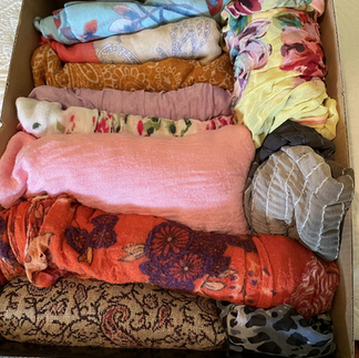 The criteria for deciding what would stay and what would go was going to be similar to that which I used on my clothes. Fit, colour and style. There were a few hats that have been "let go" either because they hug my head too tightly which is a look and feel that I am not comfortable with or they were a floppy loose style which does not work for me either. A couple of scarves went because they had become quite shabby with threads pulled and fraying, and that was it.